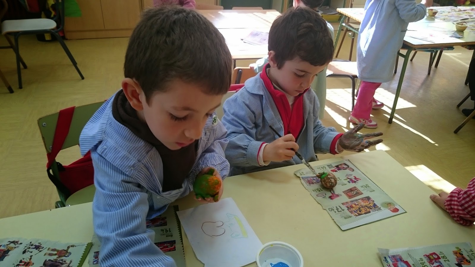 Hemos hecho tarjetas en casa y las hemos llevado al cole para mostrarselas a los demás.
